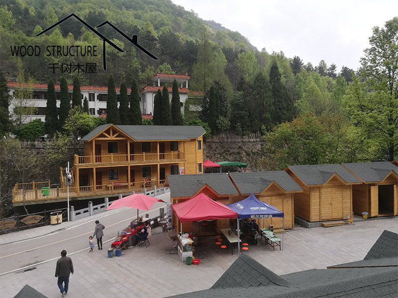 風(fēng)景名勝區(qū)的復(fù)式辦公樓木屋和20個(gè)售賣小木屋由河南千樹木業(yè)有限公司(以下簡稱千樹木屋)設(shè)計(jì)并建造。