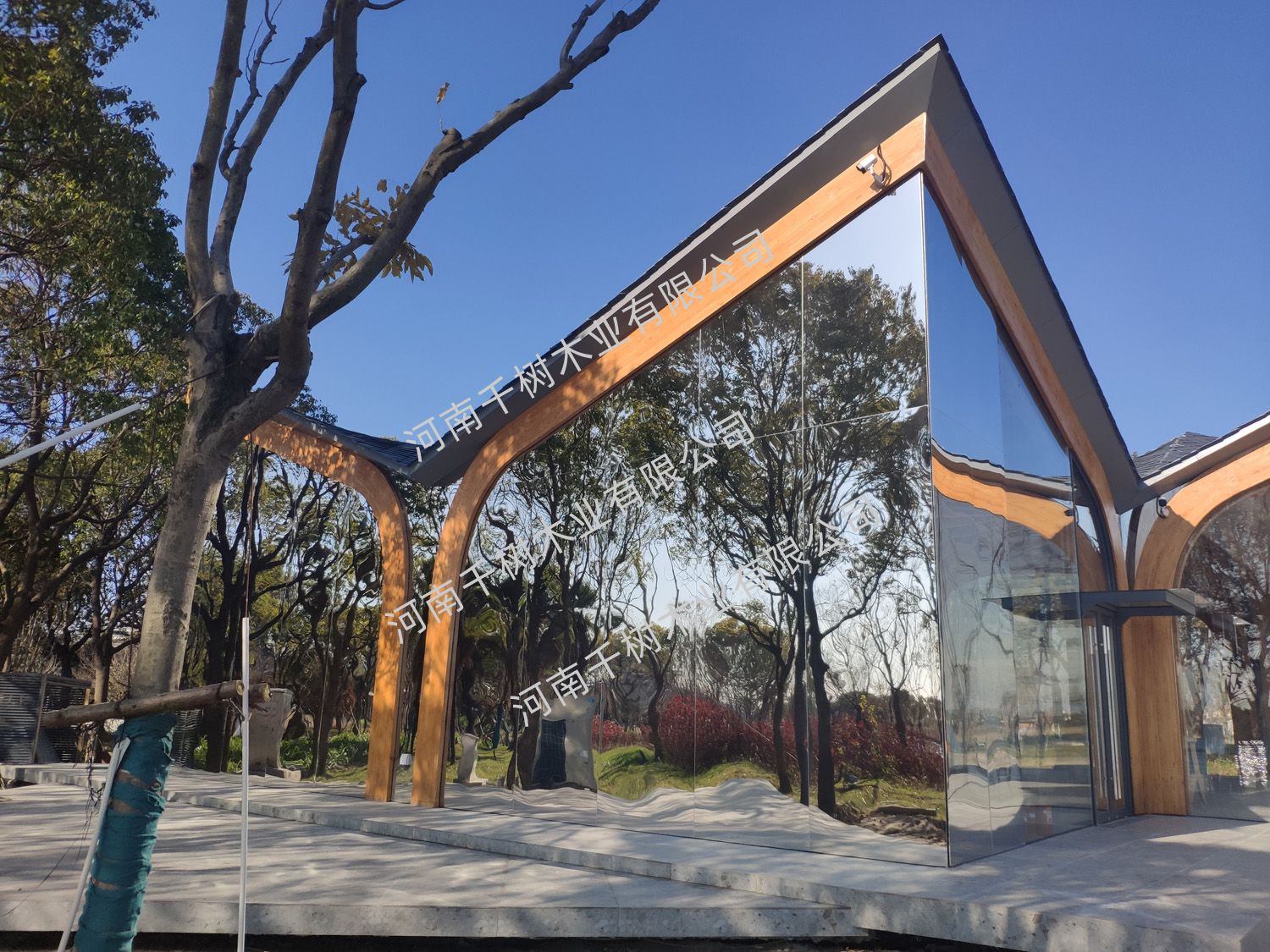 項目參數(shù):花旗松雙曲面膠合木框架,建筑面積260平米