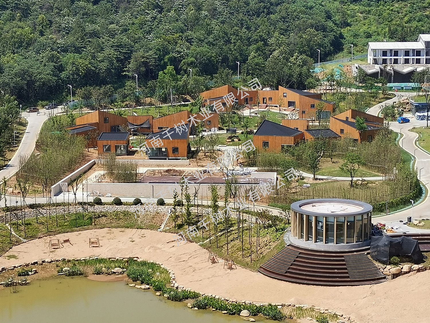 該項目2019年開工,2020年五一期間景區(qū)試營業(yè),民宿木屋選址根據(jù)地形錯落有致。選材精良,內(nèi)設精致。