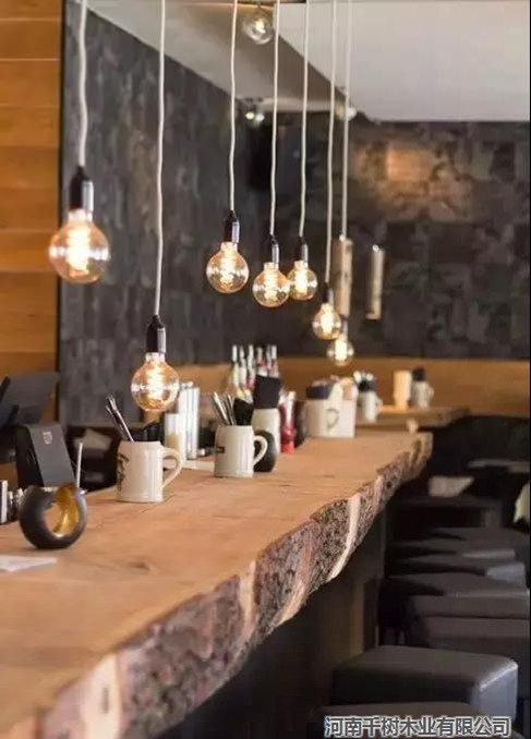 直接把木頭切開做成桌面,