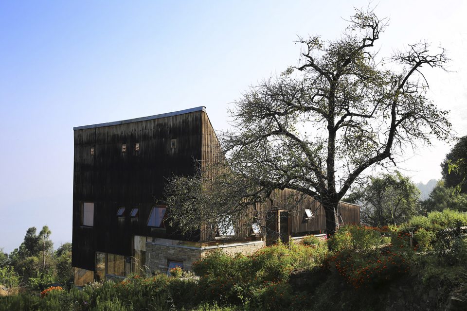 這座房子的設(shè)計考慮到了其周圍喜馬拉雅山脈白雪皚皚的自然景色,同時深深扎根于現(xiàn)有的未被破壞的梯田。這兩個壓倒性的景觀使得建筑被放置在梯田的最低級,與周圍的大環(huán)境相融合。