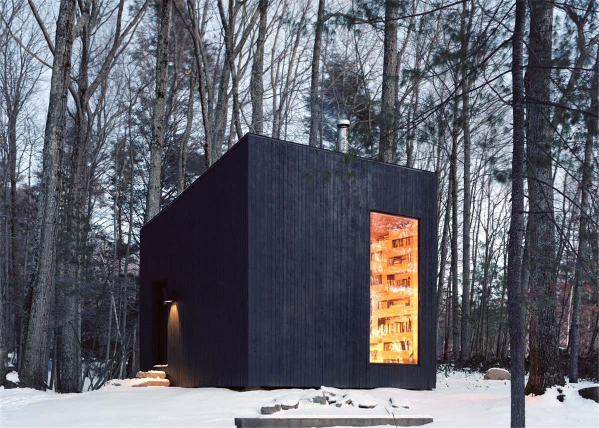 這座位于紐約的小黑屋,既是舒適的圖書館,也是度假屋的接待處。該項(xiàng)目由美國公司Studio Padron設(shè)計(jì)完成。