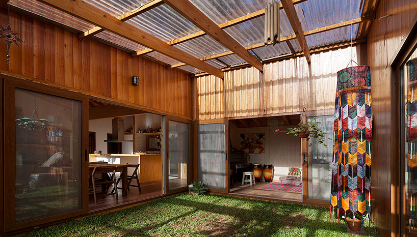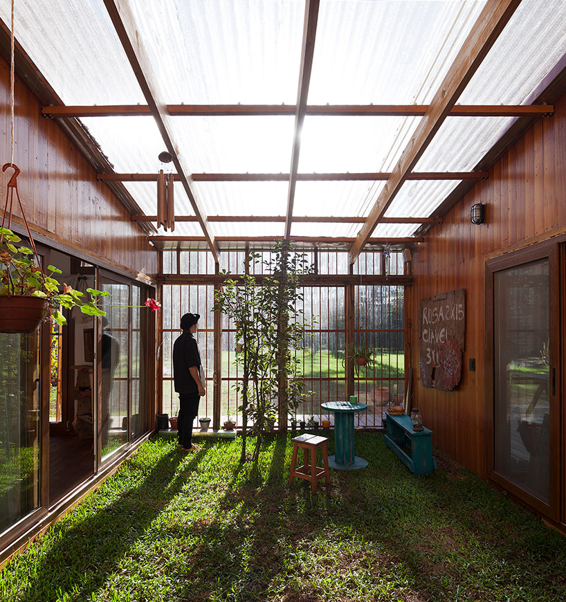 穿插在住宅當(dāng)中的綠色庭院,通向起居空間、辦公空間和主臥。