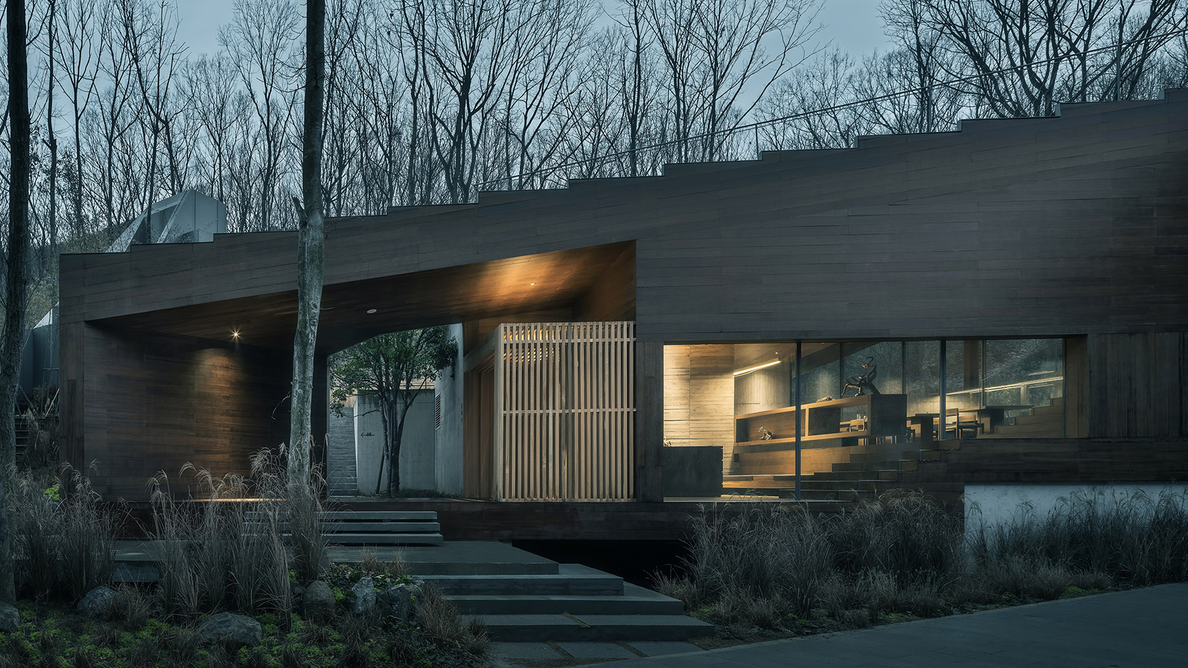 這是在杭州郊區(qū)山林里的一個(gè)休閑度假服務(wù)空間,設(shè)計(jì)是從具體的環(huán)境開(kāi)始的,我們首先要思考的是做一個(gè)什么樣的空間裝置可以和這片山林對(duì)話,可以更好的順應(yīng)地形并融入這片自然,場(chǎng)地的特殊條件決定了建筑的特殊性。