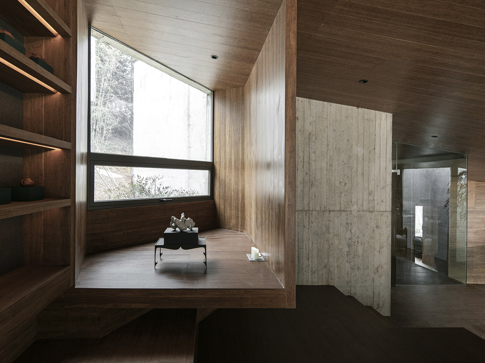 室內(nèi)空間被設(shè)計(jì)成不同的標(biāo)高,不同的生活內(nèi)容不是用隔間墻來(lái)定義的,而是由高度來(lái)區(qū)隔不同的功能,保持了相對(duì)獨(dú)立性,也創(chuàng)造了空間的豐富變化,這種變化也同時(shí)反映到建筑的外部形體,以適應(yīng)山地的坡形的不同。